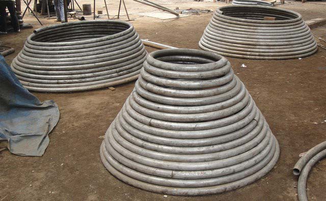 椎體盤管根據(jù)設(shè)備工藝要求和空間布局而設(shè)計的一種換熱盤管,蒸餾器里面的一種螺旋,是一種呈螺旋狀的管道系統(tǒng)。